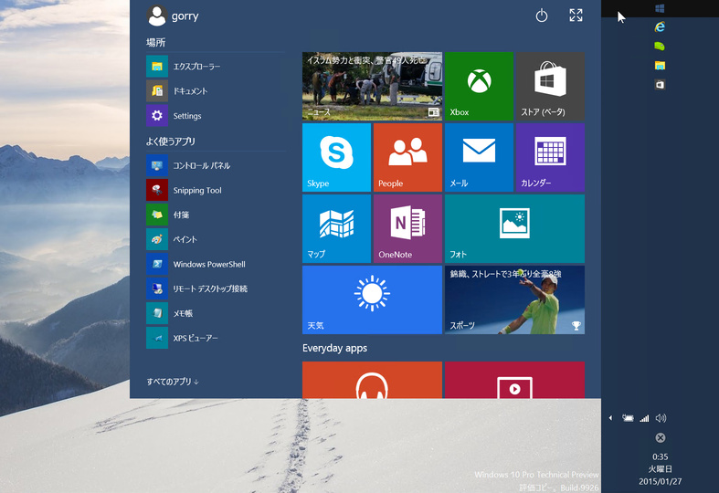 | 4925 | 2015/01/27(火) 00:38:03 | GORRY | [JPG] | Windows 10 TPのスタートメニュー |