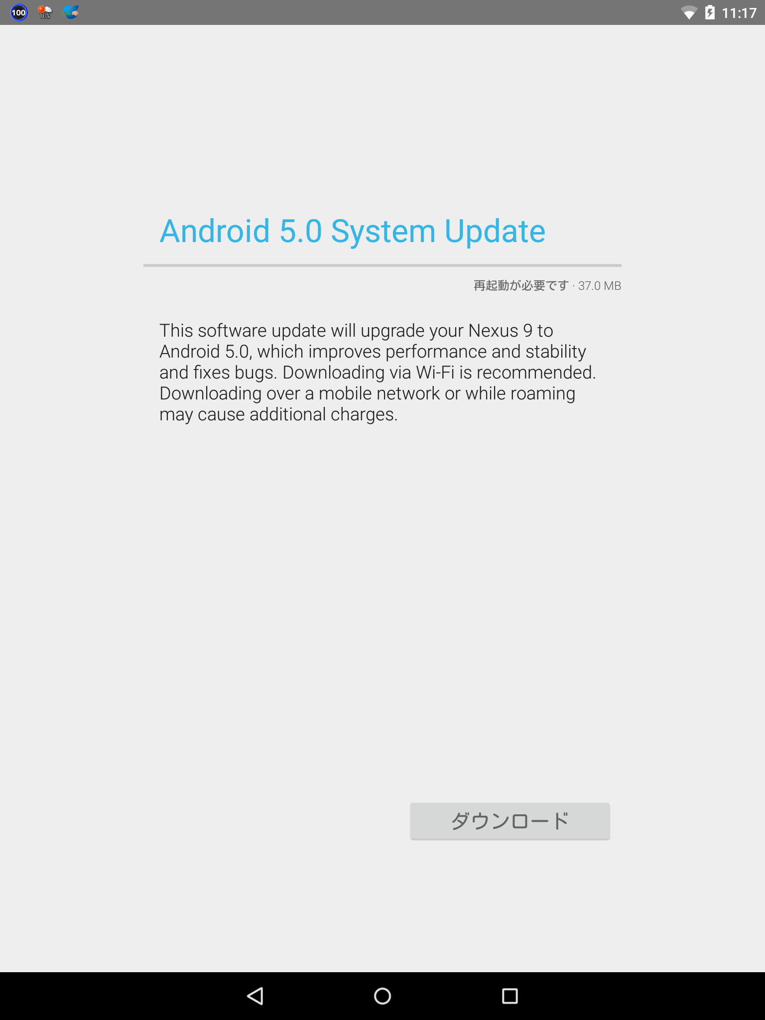 | 4629 | 2014/11/22(土) 11:20:30 | GORRY | [PNG] | Nexus9アップデート通知 |