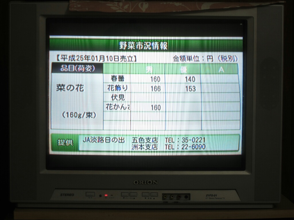 | 1976 | 2013/01/13(日) 22:08:20 | GORRY | [JPG] | 野菜市況情報@州本CATV |