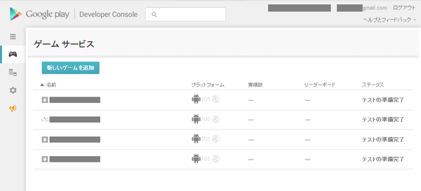 これをクリックすると、登録したゲームサービスに対応するGoogle APIの設定画面を開くことができます。